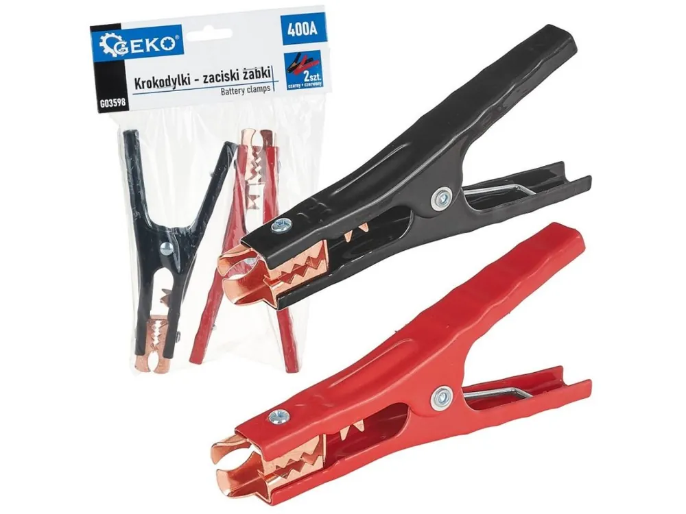 Krokosvorky na autobaterie, max. proud 400 A, 2 ks. Krokosvorky na autobaterie, max. proudové zatížení 400 A, sada 2 ks (kladný a záporný pól)Každá krokosvorka je vybavena měděnými vložkami, které zajišťují vynikající vodivost a minimalizují ztráty proudu. Díky silnému stisku a zoubkovaným čelistem pevně drží na…