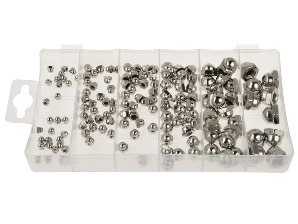 Matice s polokulovou uzavřenou hlavou, M3 – M10, sada 150 kusů. Polokulové uzavřené matice (tzv. matky) GEKO G02921Speciální druh matic s polokulovou uzavřenou hlavou (matice jsou neprůchozí). Hlava kryje závit proti znečištění.Souprava obsahuje:30x matice M330x matice M430x matice M530x matice M620x…