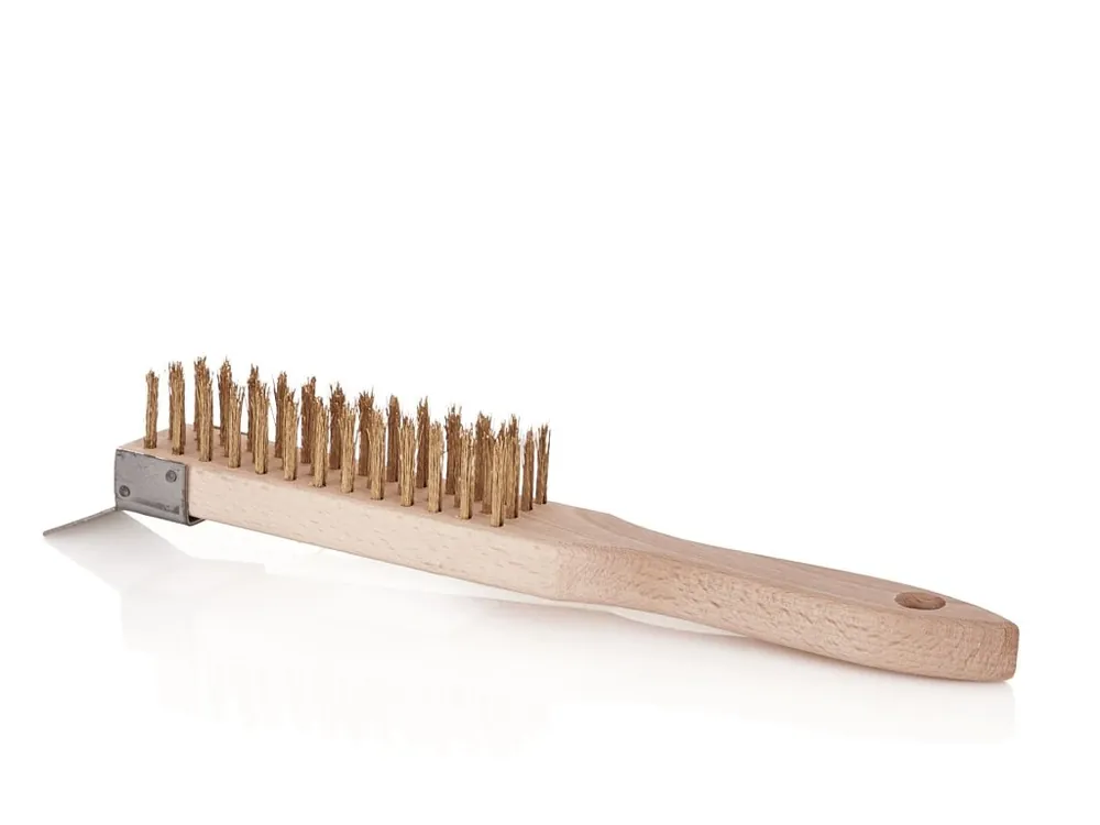 Záruka V Ceně Kartáč ocelový, pomosazený, 4 řady, dřevěný, s ocelovou škrabkou – MojeDílna
